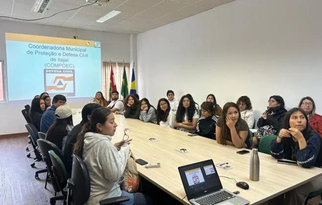 No dia 24 de outubro, a Defesa Civil de Itajaí recebeu a visita de aproximadamente 30 estudantes da Universidade Científica del Sur, do Peru. Este encontro faz parte de um intercâmbio promovido pela Universidade do Vale do Itajaí (Univali) e visa compartilhar conhecimentos sobre as mudanças climáticas e suas implicações.